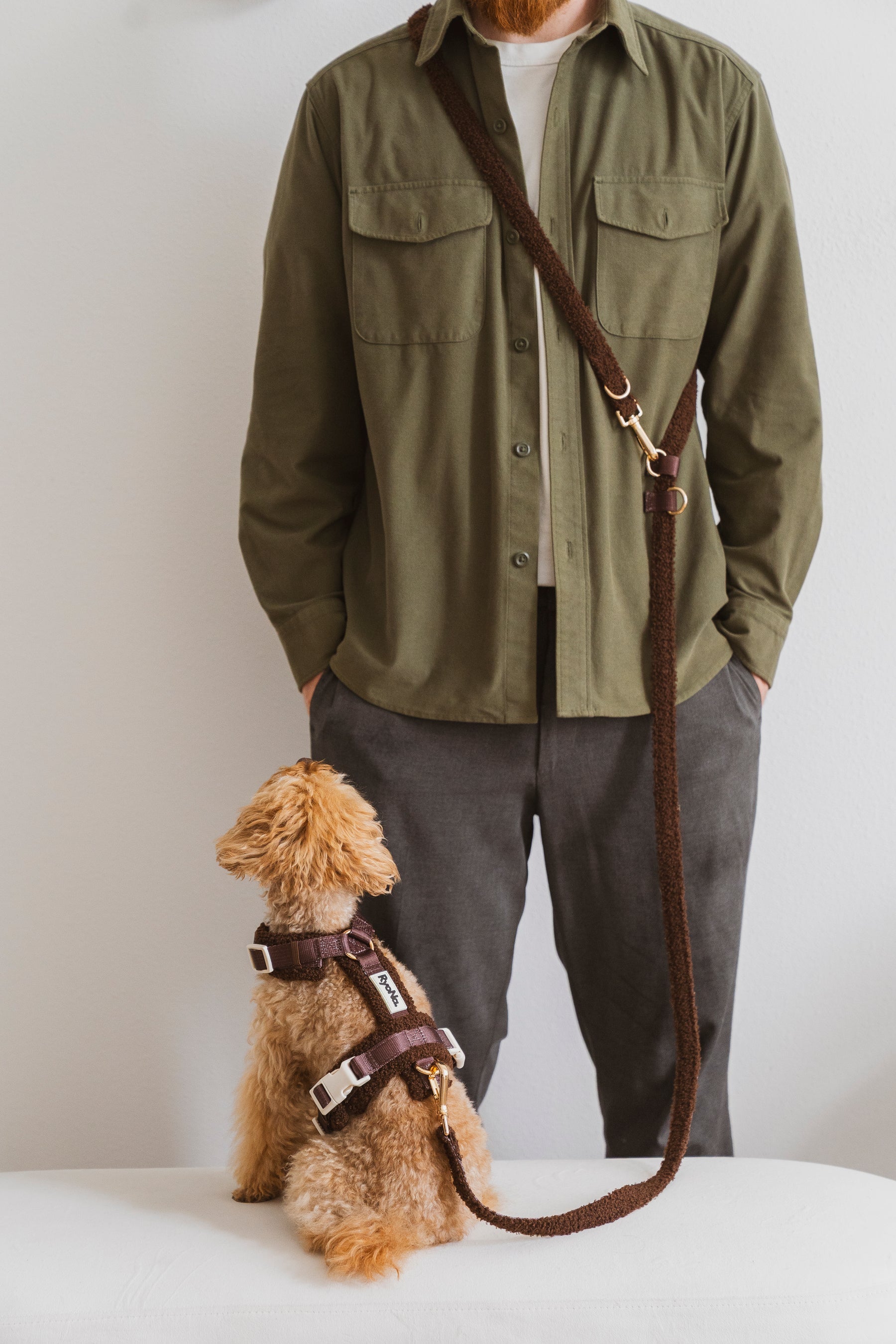 Laisse mains libres bouclée MARRON