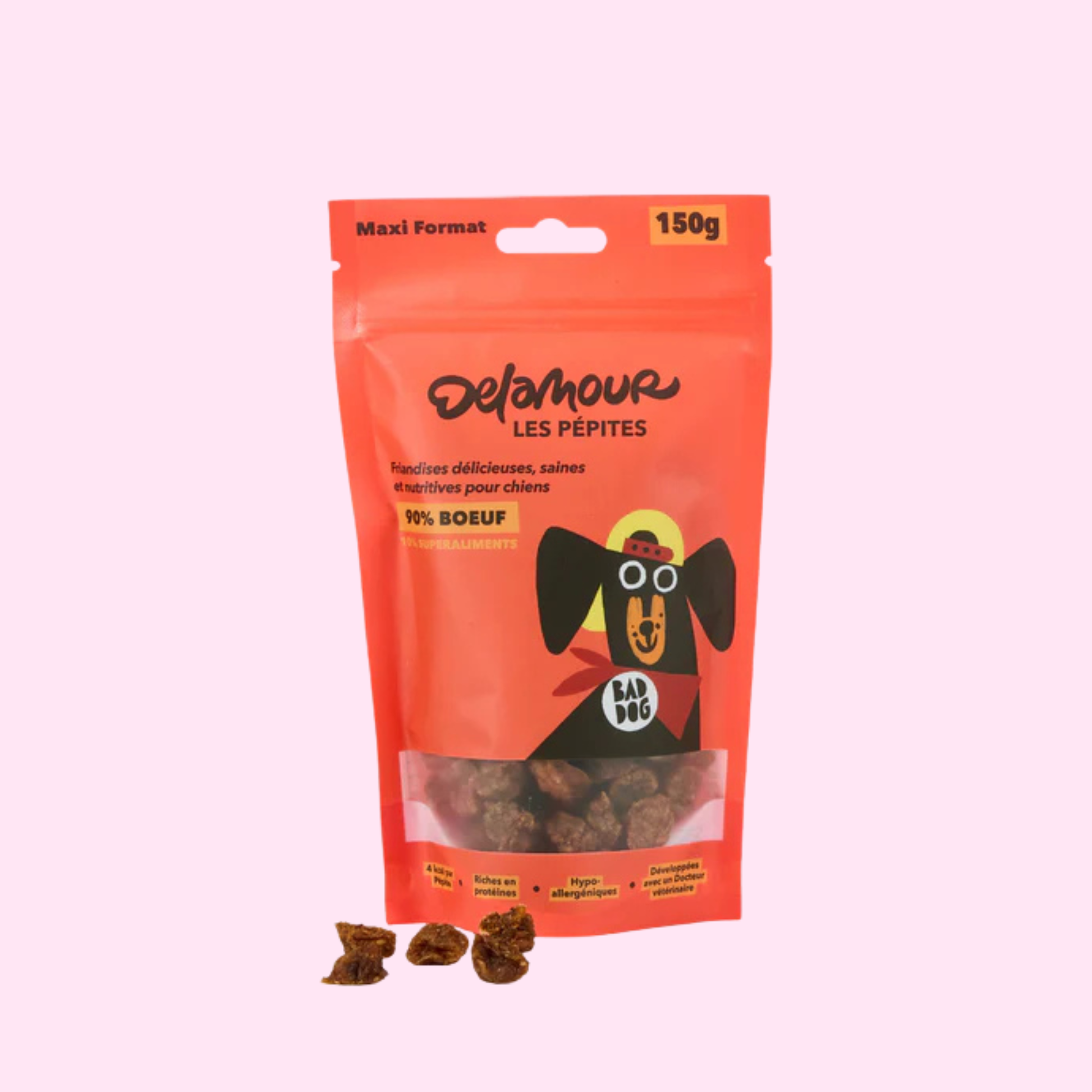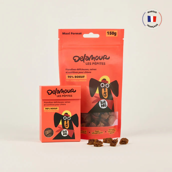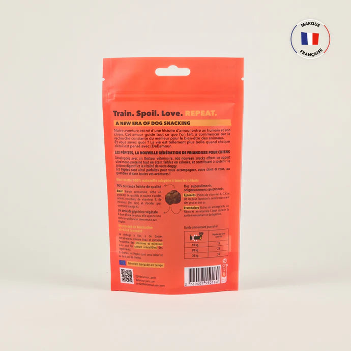 Les Pépites au bœuf sont idéales pour les séances d’éducation ou simplement pour faire plaisir à ton compagnon à quatre pattes, tout en prenant soin de sa santé.